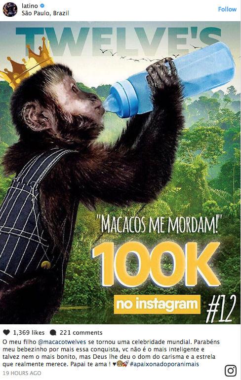 “O meu filho Twelves se tornou uma celebridade mundial. Parabéns meu bebezinho por mais essa conquista. Você não é o mais inteligente e talvez nem o mais bonito, mas Deus lhe deu o dom do carisma e a estrela que realmente merece. Papai te ama! Apaixonado por animais”, declarou .