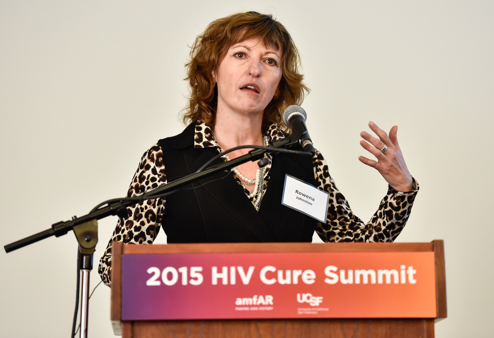 Rowena Johnston, da amfar, fala durante conferência em 2015 (Foto: Steve Jennings/Getty Images North America/AFP/Arquivo)