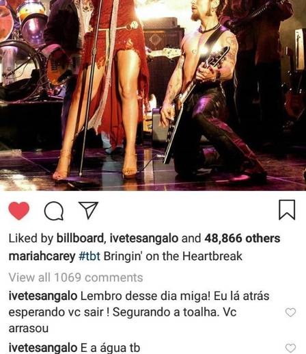Ivete comentou algumas fotos de Mariah, brincando de ser amiga dela