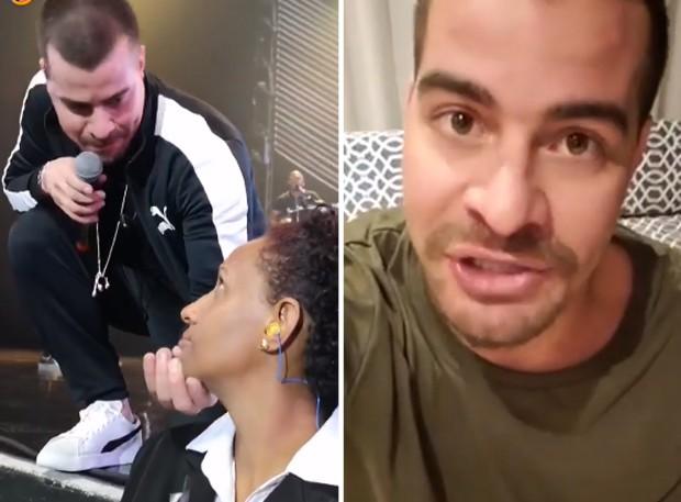 “Eu nunca tive a intenção de faltar com respeito a qualquer profissional. Eu já liguei para a Flávia, a segurança mostrada no vídeo. Eu já pedi desculpas para ela, a gente já se entendeu, ficou tudo bem. Esse assunto para a gente já está encerrado. Eu estou aqui para pedir desculpas como homem e como filho a quem eu fiz mal, a quem eu magoei”, afirmou o artista.