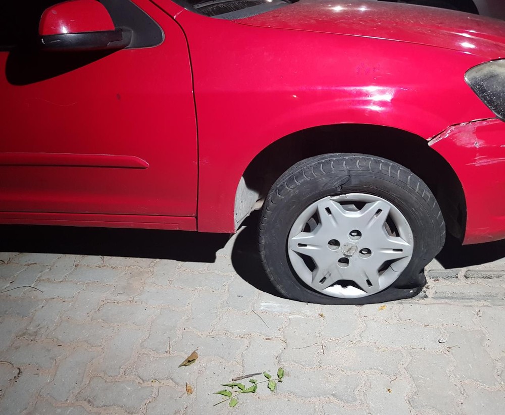 Veículo usado pelos suspeitos foi atingido por tiros. — Foto: Rafaela Duarte/ Sistema Verdes Mares