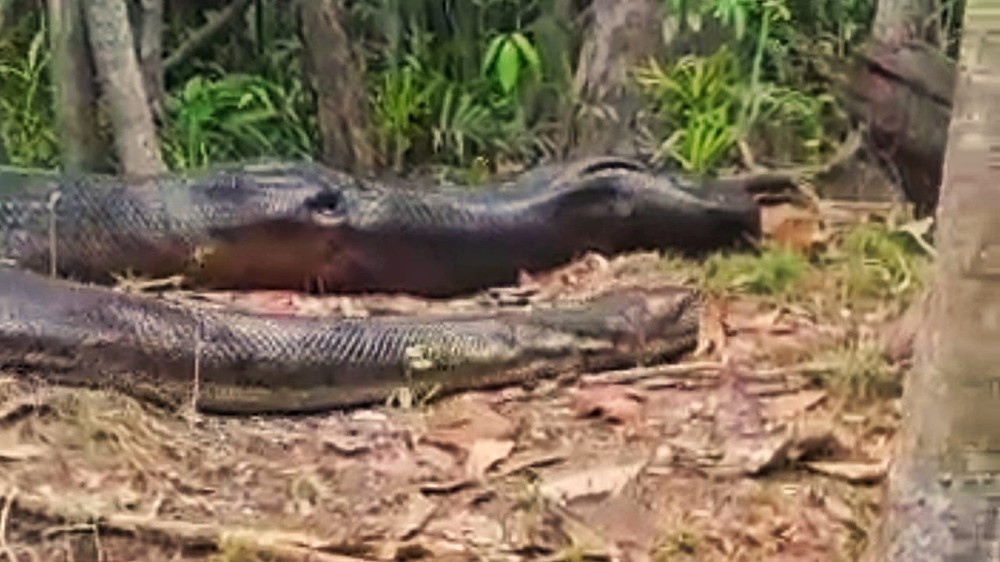 Pescador flagra cobra anaconda gigante na floresta amazônica — Foto: Reprodução