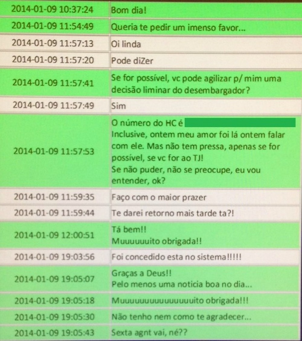 Mensagem trocadas em aplicativo de celular revelam negociação para obter habeas corpus para criminosos mediante pagamento de até R$ 150 mil — Foto: PF/Reprodução