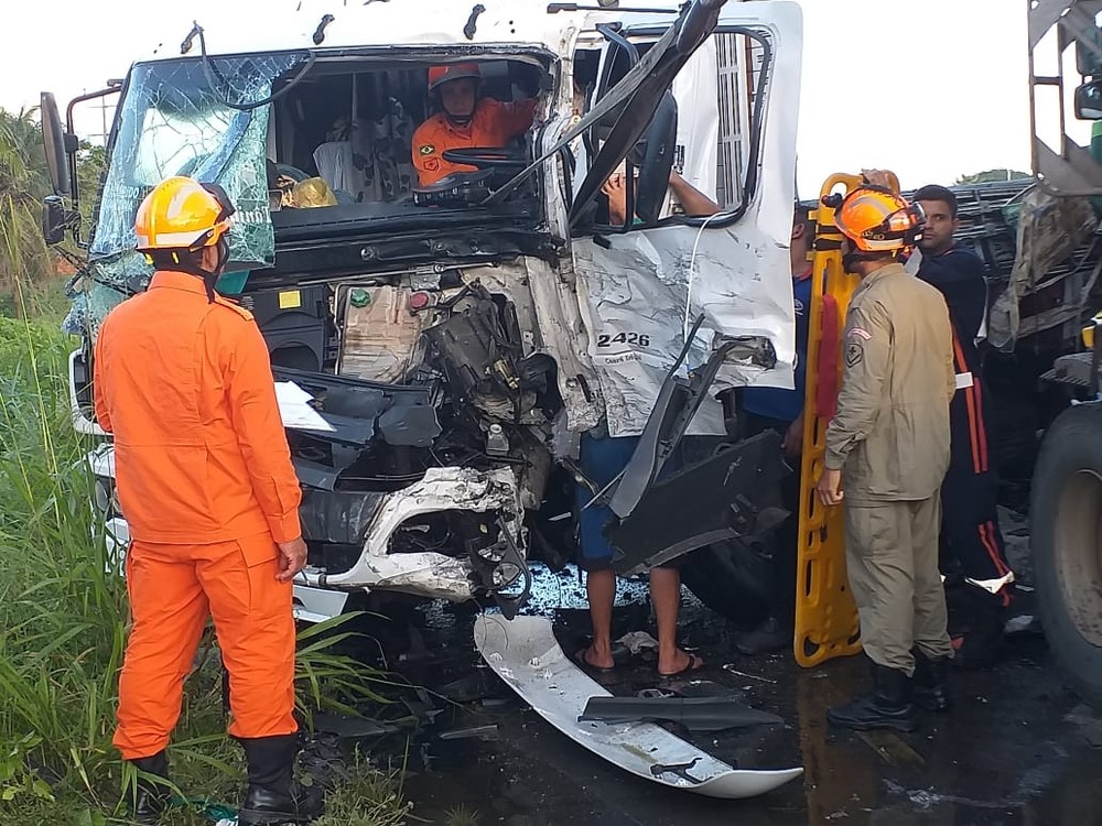 Uma colisão entre uma carreta bitrem (com duas carrocerias) e um caminhão deixou um dos motoristas preso às ferragens no km 416 do Anel Viário (BR-020), em Maracanaú, próximo à rotatória que dá acesso à cidade de Maranguape, na Grande Fortaleza. O outro condutor também ficou ferido, segundo a Polícia Rodoviária Federal (PRF). O acidente acontecei por volta das 5h30 desta quarta-feira (4).