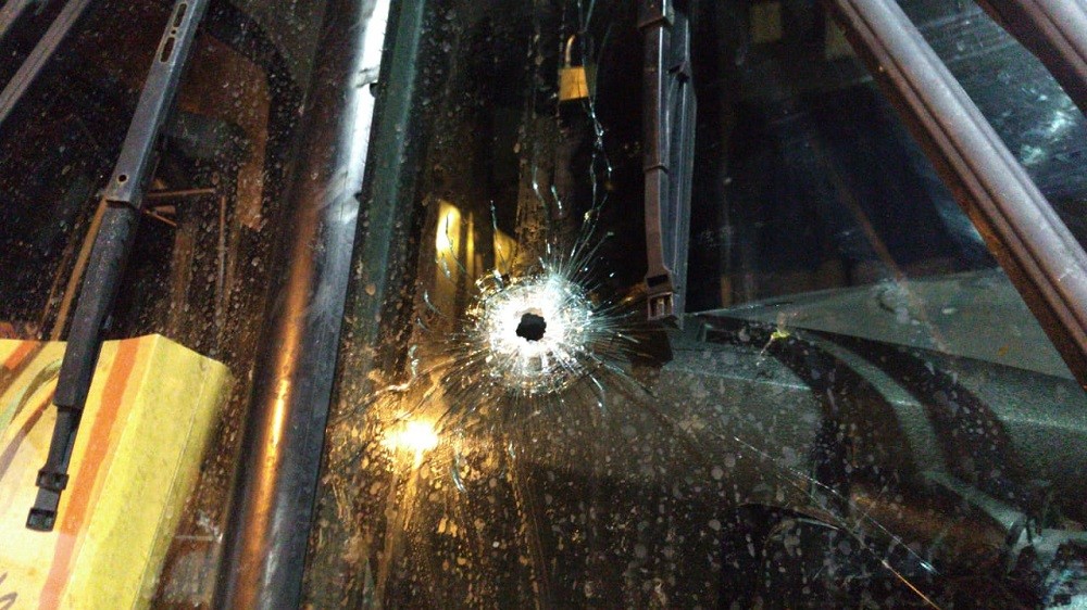 Marcas de tiros foram encontradas na janela de vidro do ônibus — Foto: Isaac Macedo/SVM